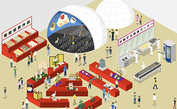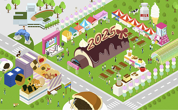 お菓子のイベントであることを表現するため、生クリームや生地などお菓子の素材のなめらかさを思わせるような曲線を用いています。