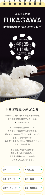 北海道深川市が運営する、ふるさと納税返礼品の魅力を紹介するカタログサイトの制作を担当しました。