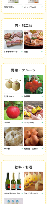 本サイトでは、農産物や加工品、工芸品など、深川市が誇る商品をカテゴリ別にわかりやすく掲載。各商品ごとに事業者をひきたたせることで、「人と産品」「地域と企業」を結びつける構成を目指しました。
