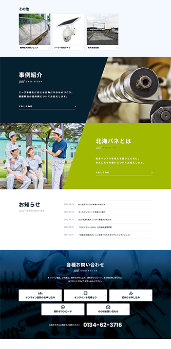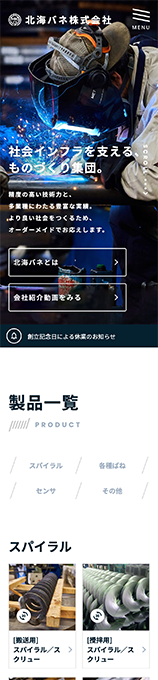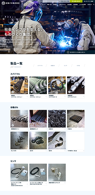 バネ製造の専門性や技術力を強調するため、落ち着いた色調と安定したレイアウトで、訪問者に信頼感を与えることを重視しました。
