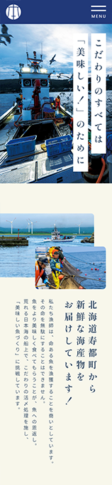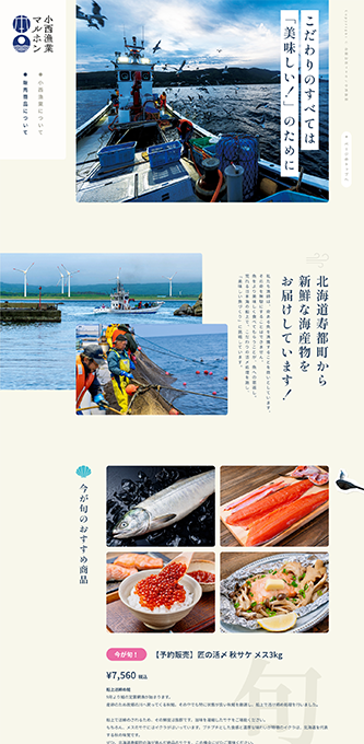 漁業の現場やこだわりを視覚的に伝えるため、現地での撮影を実施。寿都の海の豊かさや漁師の熱意を感じられるよう、臨場感あふれるビジュアルコンテンツを配置し、訪問者に漁業の魅力を直接伝えることを意識しました。