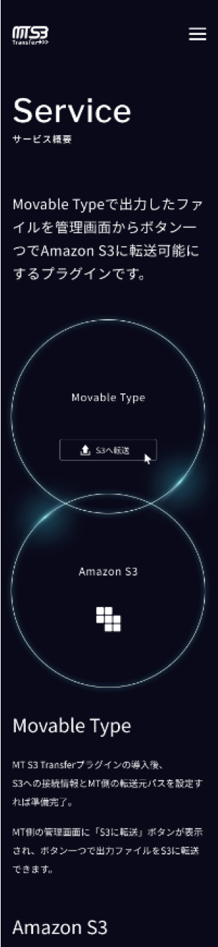 多くのファイルを扱う現場に最適で、バックアップや公開の負担を大幅に軽減します。Movable Typeの使いやすさと、Amazon S3の信頼性を活かし、業務の効率化に貢献するサービスとして提供しています。