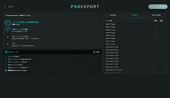 書き出しステータスやPSDファイルのエラーチェック・レイヤー名の更新など、誰でもスムーズに作業ができるようなUIを構成。